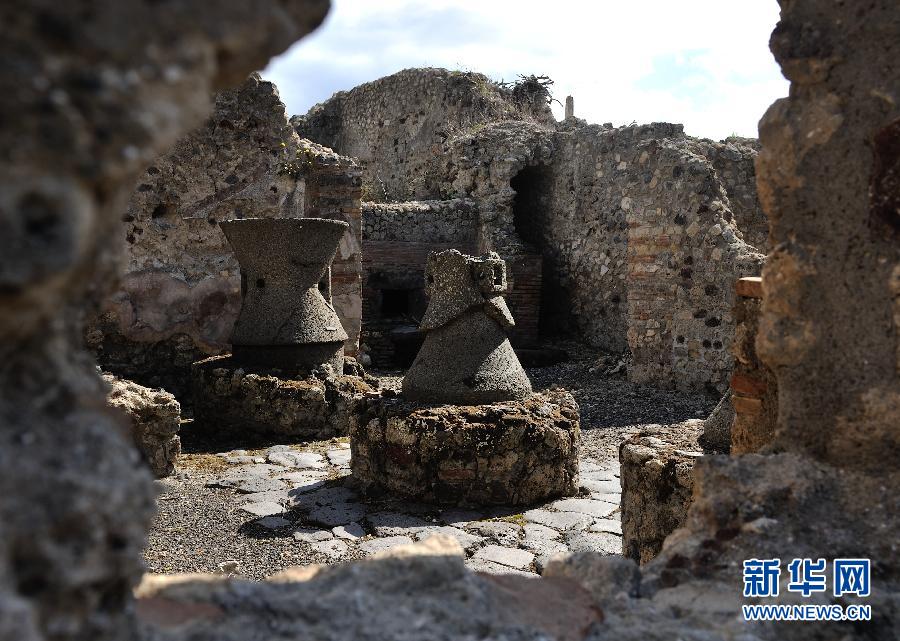 意大利龐貝古城中磨盤及面包房遺跡。新華社記者 王慶欽 攝