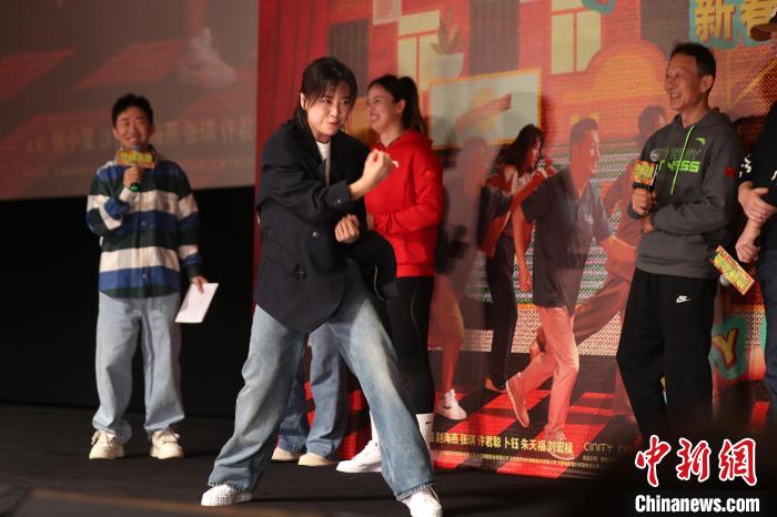 賈玲現(xiàn)場秀拳擊天賦。中新網(wǎng)記者 張亨偉 攝