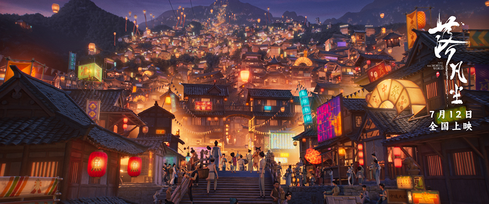 在表現(xiàn)凡間世界時(shí),電影也體現(xiàn)一種新中式美學(xué)?!堵浞矇m》以中國宋代歷史風(fēng)貌為基礎(chǔ),對(duì)繁華的人間進(jìn)行了生動(dòng)的描繪,而且還加入了不少具有現(xiàn)代生活色彩的元素,讓觀眾既能感受到傳統(tǒng)文化風(fēng)格,也能夠感受到當(dāng)代生活理念。