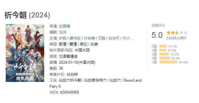有意思的是,數(shù)量上來了,有些仙俠劇的質(zhì)量卻沒跟上。截至目前,相較于早前“仙劍一”與“仙劍三”的高評分,《千古玦塵》在豆瓣只拿到了5.5分,《祈今朝》是5分,“仙劍四”只有4.3分。