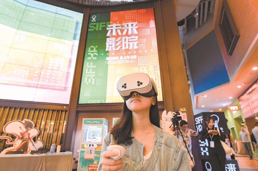 第二十七屆上海國(guó)際電影節(jié)未來(lái)影院?jiǎn)卧陂L(zhǎng)風(fēng)大悅城華誼兄弟電影中心正式啟動(dòng)。AR、VR、MR等技術(shù)讓觀(guān)眾品嘗未來(lái)影像的饕餮盛宴。文匯報(bào)記者 張伊辰攝