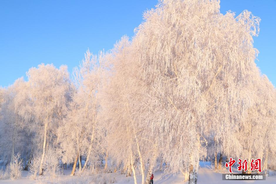 連日來,新疆阿勒泰地區(qū)遭遇十年來罕見強(qiáng)降雪,雪后初霽,氣溫漸降。1月4日,受超低溫天氣的影響,阿勒泰哈巴河白樺林出現(xiàn)大面積霜掛美景,晶瑩剔透,潔白無瑕,銀裝素裹,成為一道道美麗的風(fēng)景線。 謝師民 攝