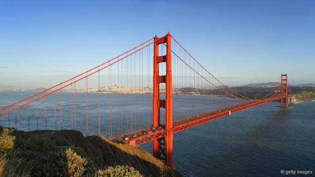 7金門大橋 位于美國舊金山的金門大橋是世界著名的橋梁之一,也是近代橋梁工程的一項奇跡。大橋雄峙于美國加利福尼亞州長1900多米的金門海峽之上,歷時4年,利用10萬多噸鋼材,耗資達3550萬美元建成。橋長共2.7公里,橋體為橙色,跨度驚人。該橋于1937年對外開放,由工程師兼詩人約瑟夫·施特勞斯設計,其講究的懸架結構和優(yōu)美的藝術裝飾塔令人贊嘆不已。