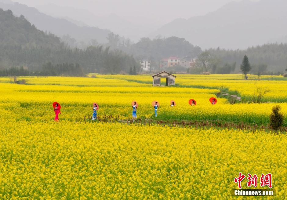 3月20日,江西省德興市??阪?zhèn)杜村婦女在田間花?!白咝恪?。當(dāng)日,江西德興市海口鎮(zhèn)杜村一批家庭婦女以千畝油菜花海為舞臺(tái),展示自己的才藝形象,希望宣傳家鄉(xiāng)的自然生態(tài)與人文歷史,擴(kuò)大旅游知名度和影響力。德興市海口鎮(zhèn)杜村交通便利,自然風(fēng)光優(yōu)美,村內(nèi)有歷史古跡和名木古樹。 胡敦煌 攝