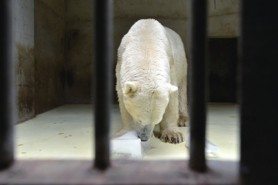 一般氣溫達(dá)到35度以上時,動物園飼養(yǎng)部門還將向北極熊、棕熊、小熊貓、金絲猴、大猩猩等重要場館運送冰塊,每塊冰大概凈重20-30斤左右,需要提前三天在冰庫中冷凍,一次性送冰8-10塊。同時為北極熊館配備冰箱,飼養(yǎng)員可隨時冷凍冰塊給動物食用。