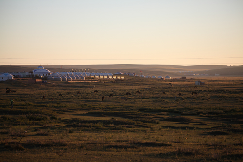 大型采風(fēng)活動的第一站就是達(dá)茂旗的希拉穆仁草原。這片陰山北麓大漠之南的神奇草原贏得了客人們的一致贊賞。福建省的平潭網(wǎng)副總編輯游文娟一踏上草原就被草原的藍(lán)天與綠草吸引,“天真藍(lán),草真美,空氣更是清新。在城市住慣的人們就應(yīng)該多來這種地方?!?/p>