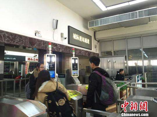 圖為長沙火車站內(nèi)乘客通過“票證人自助核驗(yàn)閘機(jī)”“刷臉”進(jìn)站。(魯毅 攝)