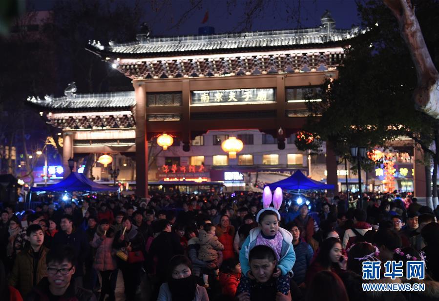 壯觀!元宵夜南京秦淮燈會游人如潮