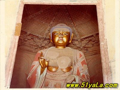 走進(jìn)第一層塔的南門,迎面便是高約10米的釋迦塑像。頂部有精美華麗的藻井。內(nèi)槽的墻壁上,畫有六幅如來佛像,門洞兩側(cè)的墻壁上,也繪有金剛、天王、弟子等壁畫。壁畫中最引人注目的是內(nèi)槽門額壁板上的三個女供養(yǎng)人。畫面雖不大,但人物的體態(tài)勻稱,面容豐滿,神情安詳而虔誠,衣帶似被微風(fēng)吹動,在表態(tài)中給人以動的感覺。畫面的色彩至今仍很鮮艷,可能是后人在遼畫的基礎(chǔ)上重新描飾的。