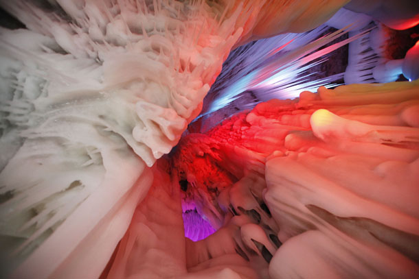 專家們稱,該冰洞位列全國一萬多個洞穴中僅有的九個冰洞之首。洞內制冷機制最強、冰儲量最多,現(xiàn)開發(fā)近百米。分成上下五層,看冰洞須穿棉衣、戴手套,小心翼翼地游覽。通過鉆冰洞,下冰樓梯,過冰棧,可到各層觀光。每層可容納數(shù)十人。洞內四周全是冰。由冰形成的冰柱、冰簾、冰瀑、冰花、冰佛、冰床、冰鐘、冰人、冰菩薩等,千奇百怪、不一而足。洞內大大小小的景致或玲瓏剔透,或晶瑩奪目,或婀娜多姿,或雄偉壯麗,無不令人驚嘆,堪稱一個冰的絕妙世界。
