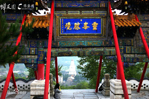 沿一百零八級(jí)石階登高,按照佛家的說法,就把人間的一百零八種煩惱踩在腳下了。置身牌樓下,手撫門柱,回身四望,遠(yuǎn)處的山,山上的云,近處的清水河,雄壯多姿的寺廟建筑群,都收入眼中,深感“靈峰勝境”四個(gè)字點(diǎn)得妙。這里,是很好的登高覽勝的觀景點(diǎn)。一九四八年春,黨中央機(jī)關(guān)從延安開赴河北省西柏坡,途中路過五臺(tái)山,陳毅同志作詩道:“本不游五臺(tái),迂道時(shí)日緊,至今有余歡,曾踏菩薩頂?!?/p>