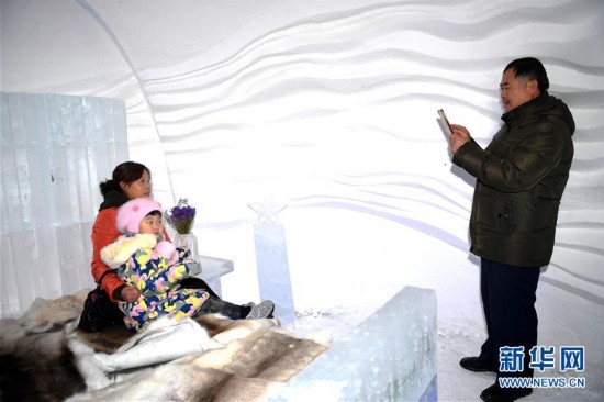 12月24日,在內(nèi)蒙古根河市敖魯古雅鄂溫克民族鄉(xiāng),游客在冰雪酒店里拍照留念。當日,第五屆中國冷極節(jié)在內(nèi)蒙古自治區(qū)根河市開幕。根河市素稱“中國冷極”,當?shù)乩帽┵Y源,并結(jié)合獨特的鄂溫克民族風情,打造冬季旅游項目,為游客帶來不一樣的冰雪體驗。新華社記者劉磊攝