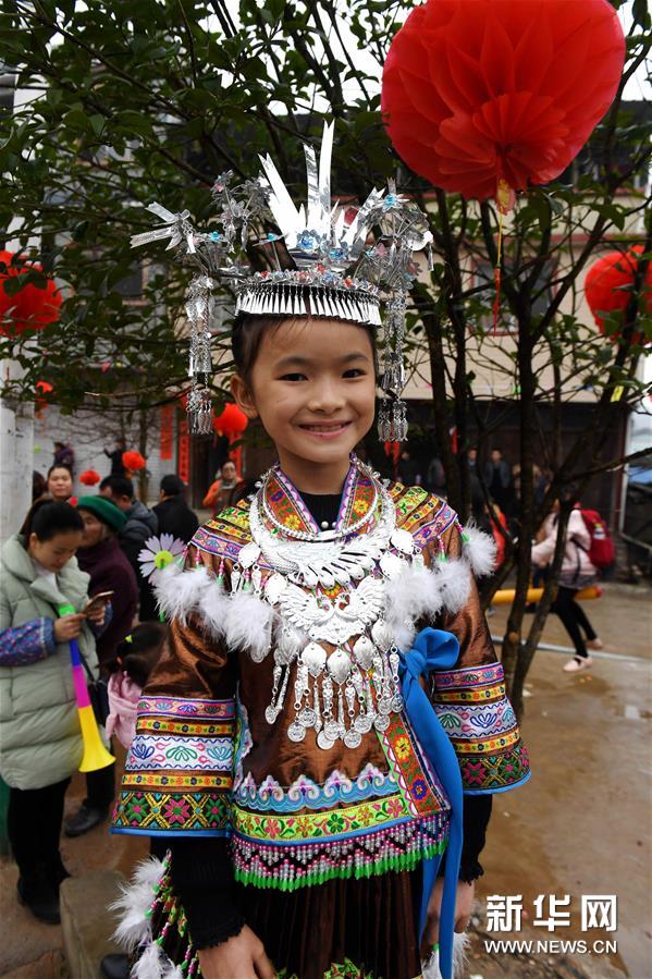 2月7日,廣西融水苗族自治縣安太鄉(xiāng)苗族群眾開展傳統(tǒng)的“打同年”民俗活動。當地數百名苗族同胞與游客們歡聚一堂,一起開展對歌、蘆笙踩堂、文藝晚會等活動,歡慶新春佳節(jié)。 “打同年”是融水苗族村寨的一種民俗,即友好村寨之間的拜年聯歡活動。新華社記者 李斌 攝