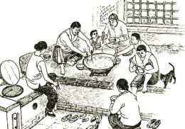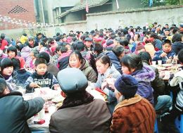 前來(lái)幫忙的親朋好友及村民們不說(shuō)去“赴宴”或“喝酒”,也不說(shuō)當(dāng)今的流行詞“趕飯局”,而是稱“上事筵”或“在事筵上了”;服務(wù)于“事筵”的行業(yè),如廚師、鼓樂(lè)班、出賃家具及算卦先生等,則叫“走事筵”“串事筵”。由此可見(jiàn),事筵雖然也是“宴”,但太原人所稱呼的一個(gè)“事”字,就使得這場(chǎng)宴席和一般的吃喝不同,是有著重要性的內(nèi)容和目的。舉辦者并非閑情逸致地?cái)[席,而“上事筵”者也不是僅帶著一張嘴去混飯,雙方都是事筵中的參與者,都要在事筵中互動(dòng),并把事筵推向高潮?!笆麦邸倍致?tīng)上去實(shí)在、鄭重,不但讓人認(rèn)可,且讓人人都有一份事筵上的職責(zé)感。