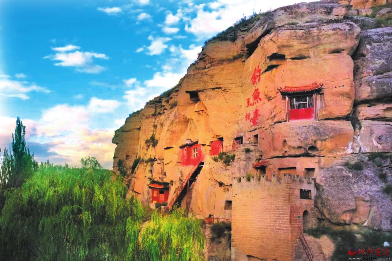 釣魚臺在石壁上鑿就,構件懸空,門額上鐫刻著“天險雄辟”四字。石窟呈方形,共有六處,形狀大同小異,內設佛祖閣、潮音閣、藏經洞、古韻軒、呂祖祠等佛教活動區(qū)。從地形上看,釣魚臺恰好位于黃河由西向南將要拐彎的回旋之地,陳奇瑜之孫陳大德在《釣魚臺記》中曾對此地的優(yōu)美風景進行描述:“輕鰷出水,白鷗矯翼,釣艇往來碧波間……”遺憾的是,陳奇瑜還沒來得及居住,就遭時任山西巡撫的申朝紀陷害,以不遵剃發(fā)令、“留發(fā)不留頭”為由押解太原斬首,死后葬于保德縣黃河岸邊距釣魚臺不遠處的林家溝村西。