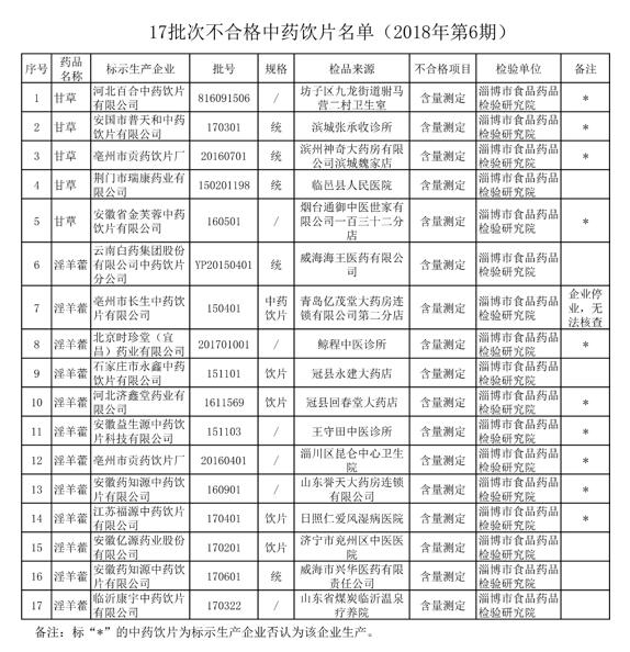 人民網(wǎng)北京5月29日電 (董童)28日,山東省藥監(jiān)局發(fā)布《關(guān)于17批次中藥飲片質(zhì)量抽檢不合格的通告(2018年第6期)》(以下簡稱《通告》)。經(jīng)淄博市食品藥品檢驗研究院檢驗,標示為云南白藥集團股份有限公司中藥飲片分公司等15家企業(yè)生產(chǎn)的17批次中藥飲片,經(jīng)抽檢質(zhì)量不符合標準規(guī)定。