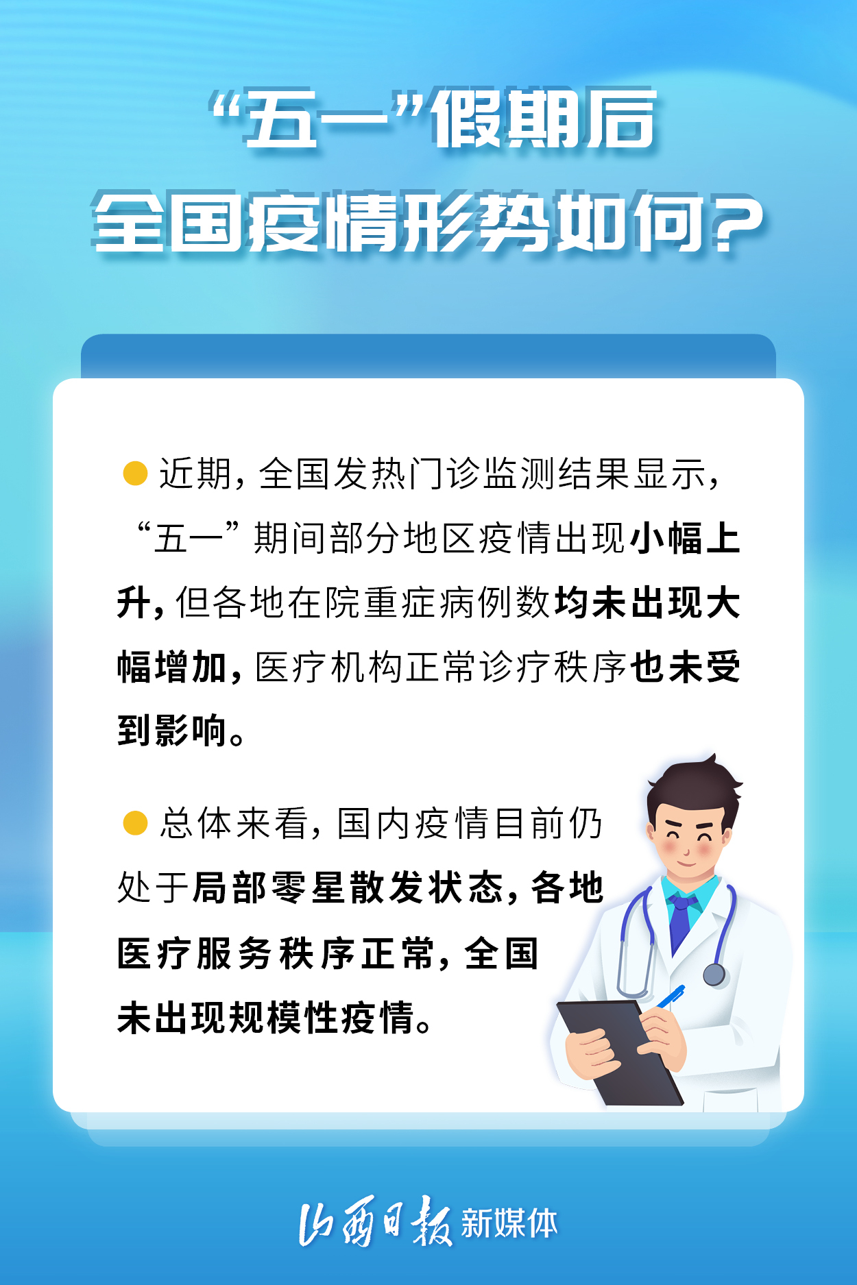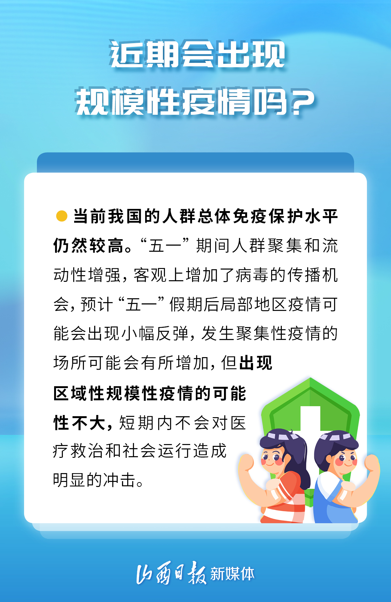 “五一”假期后全國(guó)疫情形勢(shì)如何?咽喉痛就是“二陽(yáng)”了嗎?“二陽(yáng)”的風(fēng)險(xiǎn)高嗎?近期會(huì)出現(xiàn)規(guī)模性疫情嗎?“二陽(yáng)”了該怎么辦?...... 5月8日,國(guó)務(wù)院聯(lián)防聯(lián)控機(jī)制召開新聞發(fā)布會(huì)介紹新冠疫情不再構(gòu)成“國(guó)際關(guān)注的突發(fā)公共衛(wèi)生事件”后防控工作有關(guān)情況,并針對(duì)公眾關(guān)心的熱點(diǎn)問題進(jìn)行回應(yīng)。