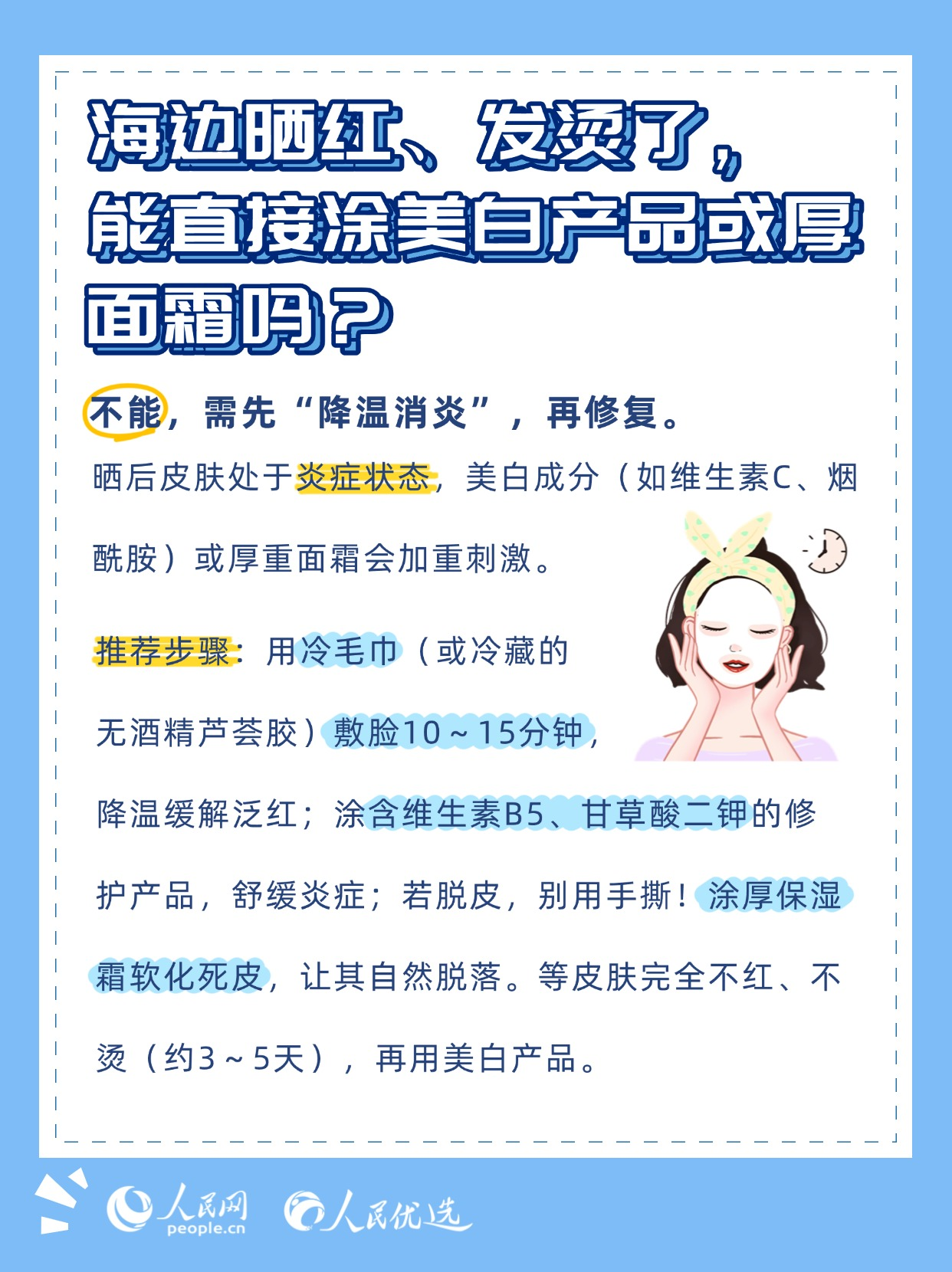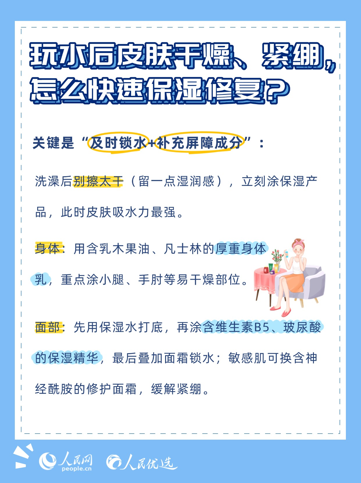 夏日炎炎,無(wú)論是泳池里的清涼暢游,還是海邊的逐浪嬉戲,都是驅(qū)散暑氣的不錯(cuò)選擇。但玩水的快樂(lè)背后,卻藏著不少傷害皮膚的“陷阱”——泳池的消毒劑、海邊的強(qiáng)紫外線、海水中的高鹽分,稍有不慎就可能引發(fā)皮膚干燥、泛紅、曬黑、長(zhǎng)斑甚至?xí)駛?。本期《人民?yōu)選來(lái)了》教你掌握科學(xué)的護(hù)膚方法,讓你在享受玩水樂(lè)趣的同時(shí),保持健康的肌膚狀態(tài)。 指導(dǎo)專(zhuān)家:中國(guó)中醫(yī)科學(xué)院西苑醫(yī)院皮膚科副主任醫(yī)師 佘遠(yuǎn)遙