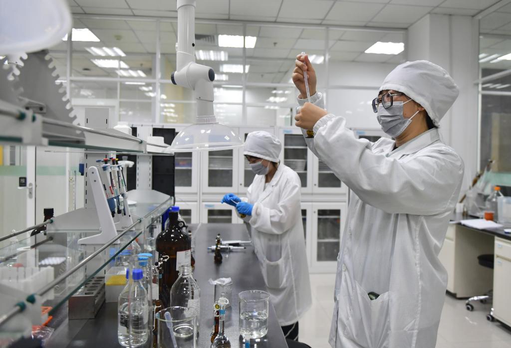 沈陽(yáng)一家藥企研發(fā)人員在進(jìn)行樣品處理。新華社記者 楊青 攝