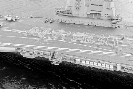 3日上午8時許,山東艦和3艘屬艦組成縱隊隊形,在香港特區(qū)政府船隊、駐香港部隊艦艇、直升機伴航伴飛下,駛?cè)刖S多利亞港。山東艦飛行甲板上,艦載戰(zhàn)斗機、直升機列陣,700余名海軍官兵身著白色軍裝,列隊排出“國安家好”4個大字,表達愛國愛港的濃濃深情和對香港同胞的美好祝福。海上,香港特區(qū)消防船用“水門禮”歡迎編隊;空中,香港特區(qū)伴飛直升機現(xiàn)場直播編隊進港實況;岸邊的民眾隔海向來訪官兵揮手致意。按照預(yù)定方案,山東艦和延安艦在維多利亞港西錨地錨泊,湛江艦和運城艦??堪捍捃姞I碼頭。