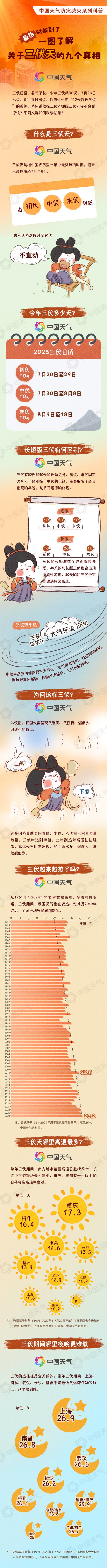 今天(7月20日),我國(guó)正式入伏,意味著一年中最熱的時(shí)候來(lái)了。今年為30天短版三伏,打破了近十年“40天超長(zhǎng)三伏”的慣例。為何說(shuō)熱在三伏?短板三伏天會(huì)不會(huì)更涼快?不同人群如何科學(xué)防暑?中國(guó)天氣網(wǎng)推出防災(zāi)減災(zāi)系列科普,一圖了解關(guān)于三伏天的9個(gè)真相。