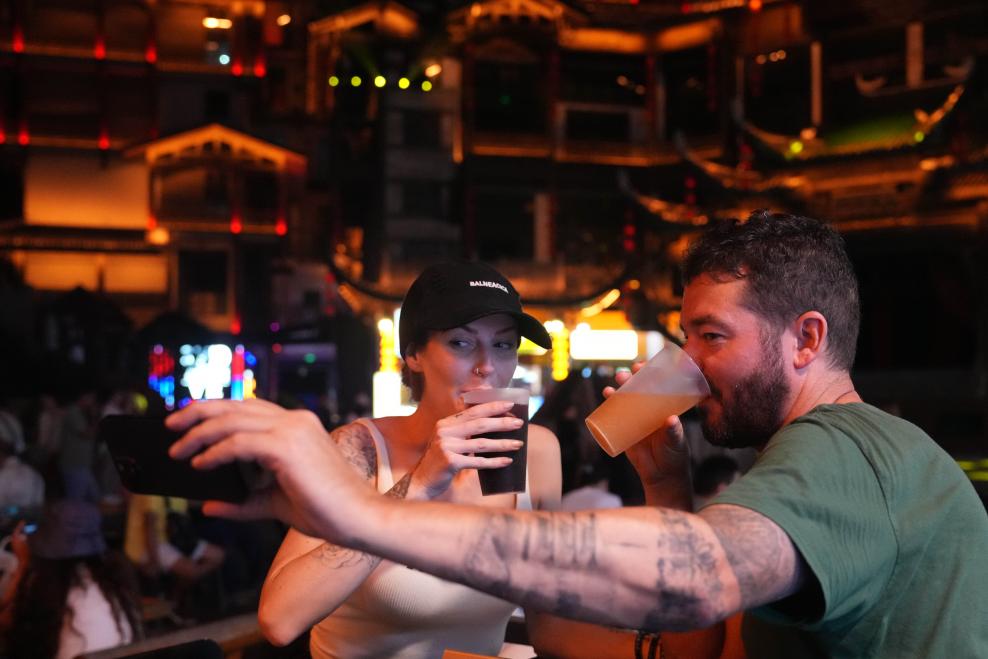5月20日,澳大利亞游客在張家界市七十二奇樓景區(qū)合影。隨著一系列入境便利政策措施的實(shí)施,越來(lái)越多外國(guó)游客來(lái)到湖南張家界探尋山水人文之美。新華社記者 薛宇舸 攝