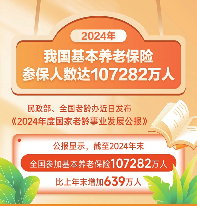 2024年 我國基本養(yǎng)老保險參保人數達107282萬人