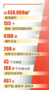 展覽面積超過43萬平方米,155個(gè)國家、地區(qū)和國際組織參與,4108家境外企業(yè)參展,290家世界500強(qiáng)和行業(yè)龍頭企業(yè)參展……在八方來客眼中,進(jìn)博會越長越“高”、越來越“壯”。