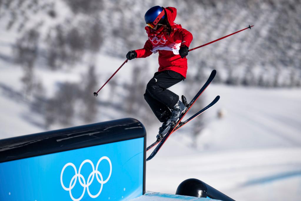 2月14日,中國(guó)選手谷愛(ài)凌在北京冬奧會(huì)自由式滑雪女子坡面障礙技巧資格賽中。新華社記者肖藝九攝