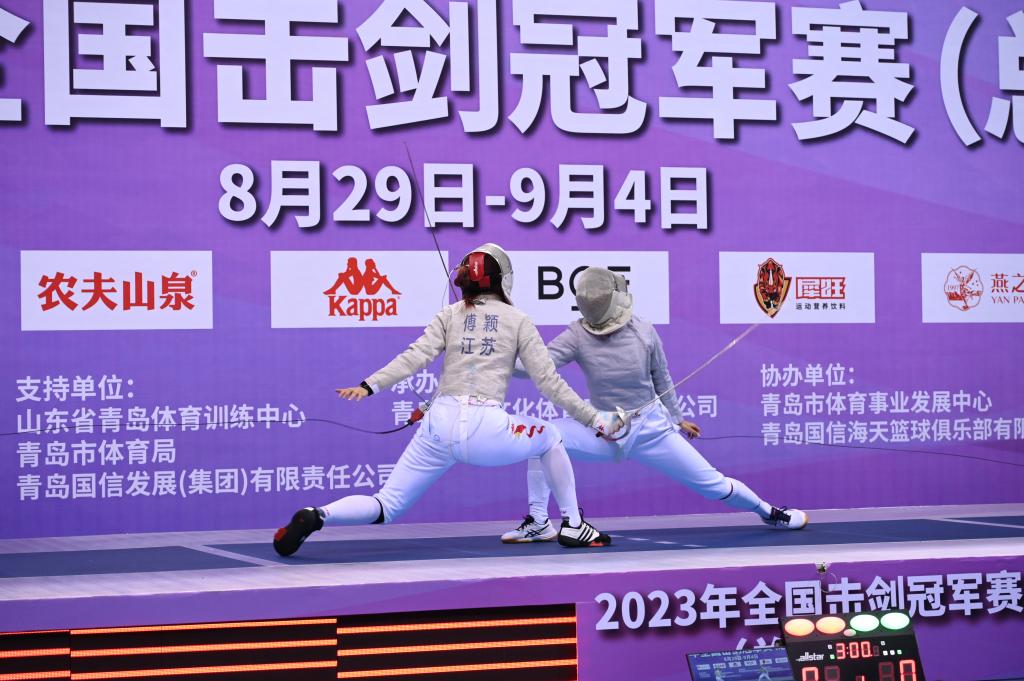 江蘇隊傅穎(左)在比賽中。(圖片來自中國擊劍協(xié)會)