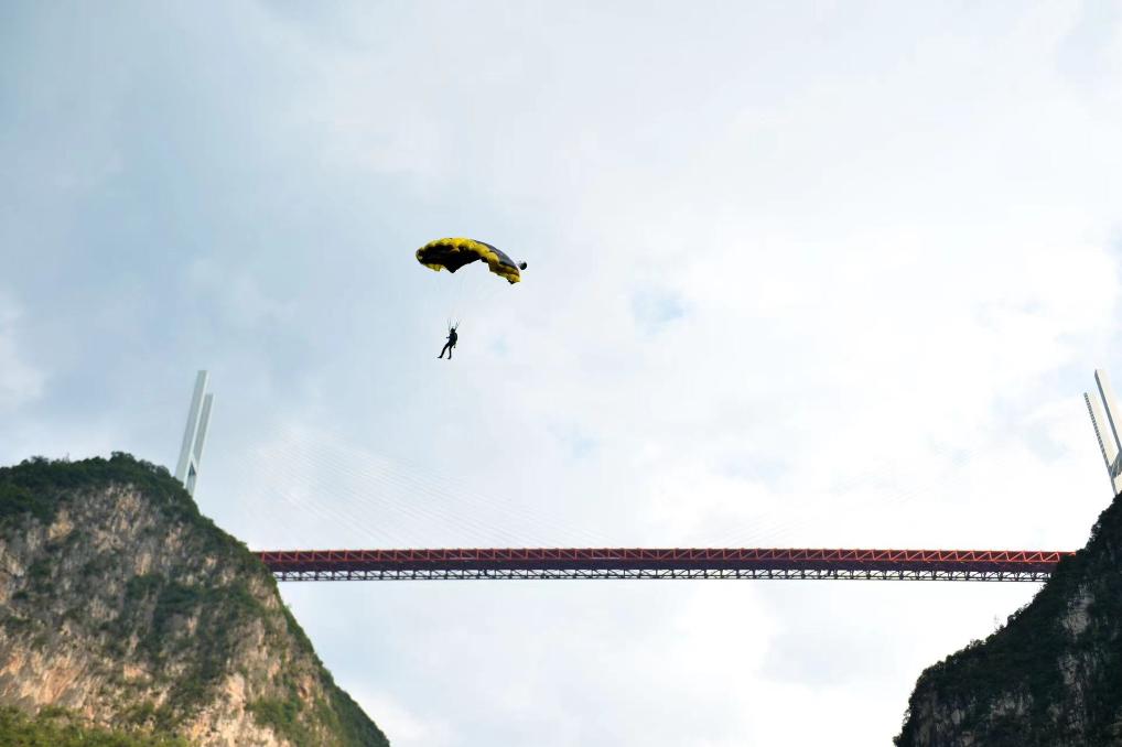 新華社貴陽9月6日電(記者駱飛、吳思)6日上午,極限運(yùn)動(dòng)員們相繼從北盤江大橋上飛躍而下,拉開了在貴州省六盤水市舉行的2023國(guó)際高橋極限運(yùn)動(dòng)邀請(qǐng)賽世界第一高橋站低空跳傘角逐的序幕。