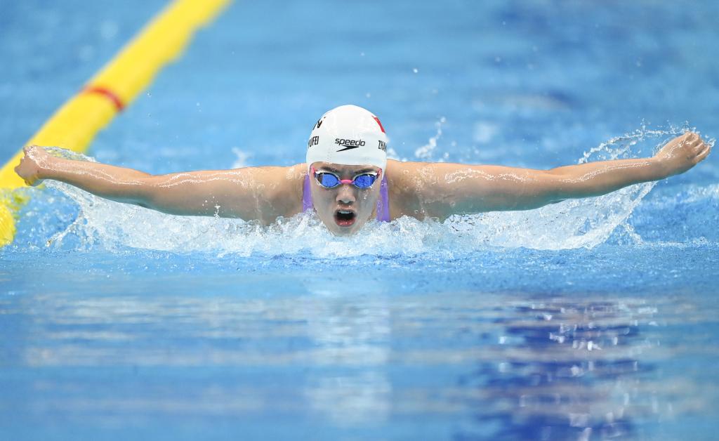 9月24日,中國隊選手張雨霏在女子200米蝶泳決賽中以2分05秒57破賽會紀(jì)錄的成績奪冠。