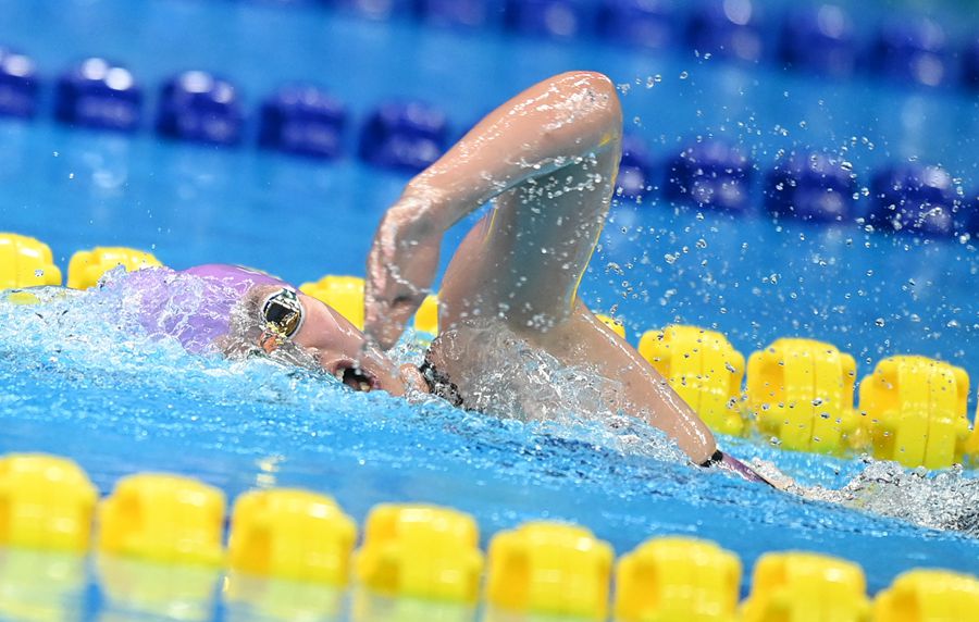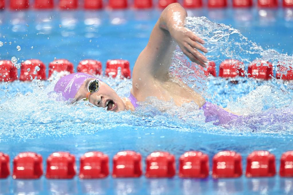 9月24日,中國隊選手李冰潔以15分51秒18破賽會紀(jì)錄的成績摘得女子1500米自由泳金牌。