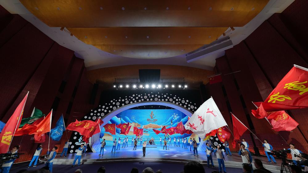 冰雪相約,同心筑夢。27日20時許,“十四冬”閉幕式在呼倫貝爾大劇院開始。在歡快熱烈的氣氛中,各參賽代表團旗幟入場。全體起立,奏唱中華人民共和國國歌。