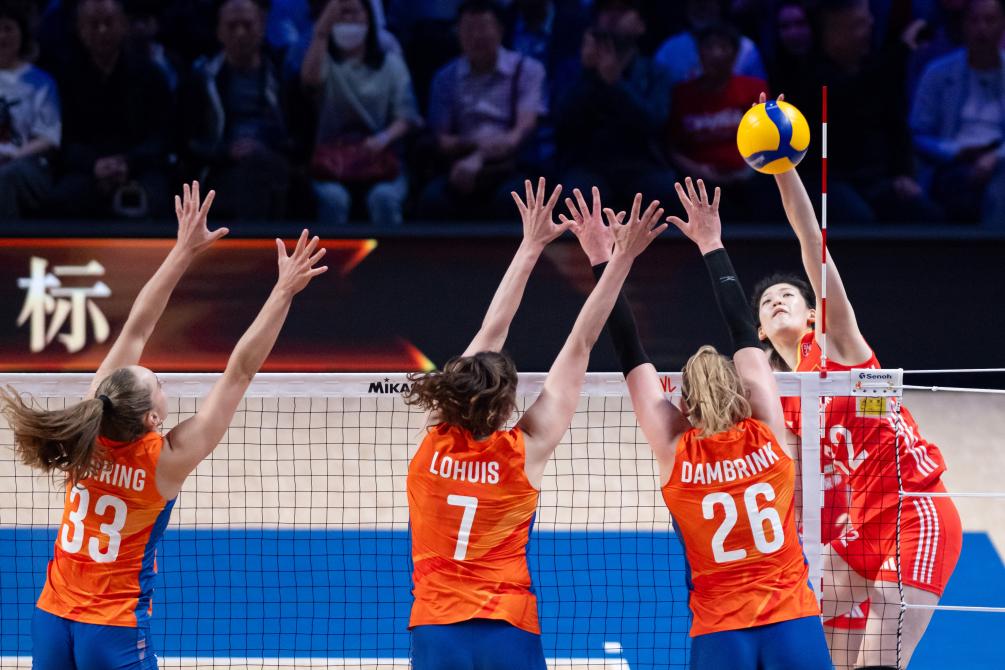 首局比賽中國隊失誤較多,荷蘭隊取得13:6的領先。中國隊請求暫停后迅速調整狀態(tài),一度將分差縮小至3分,但最終還是以21:25告負。第二局,中國隊在開局落后的情況下依靠多點進攻在后半段反超比分,以25:23扳平大比分。士氣大振的中國女排在接下來的比賽中掌握了主動,進攻更加積極,以25:23、25:21連下兩局贏得勝利。