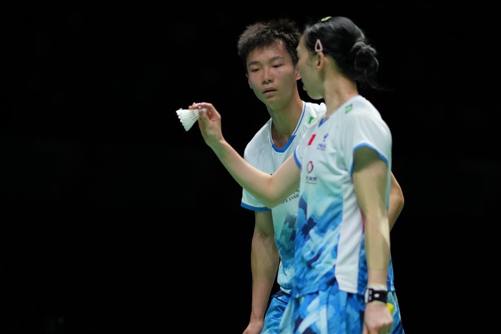 8月24日,蔣振邦/魏雅欣(右)在比賽中交流。新華社記者 張笑宇 攝