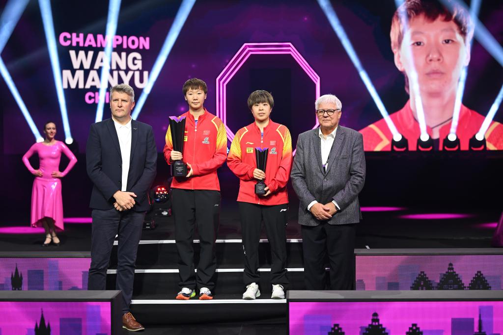 王曼昱賽后說:“贏下比賽非常不容易,大迪(王藝迪)狀態(tài)非常好,我倆一直在博弈,比分很膠著。第五局是關(guān)鍵節(jié)點,開局我落后很多,后來在發(fā)球上做出變化,重新調(diào)動自己,扭轉(zhuǎn)局面。在來法蘭克福之前有段時間沒有參賽了,能贏得這個冠軍是對近期訓練的認可和肯定?!?/p>