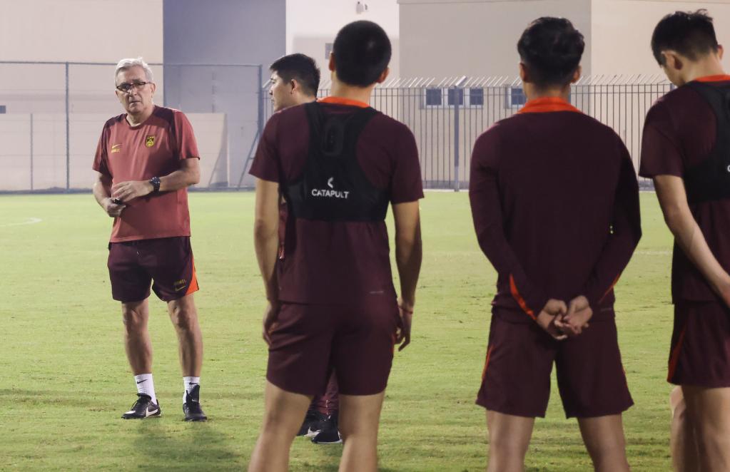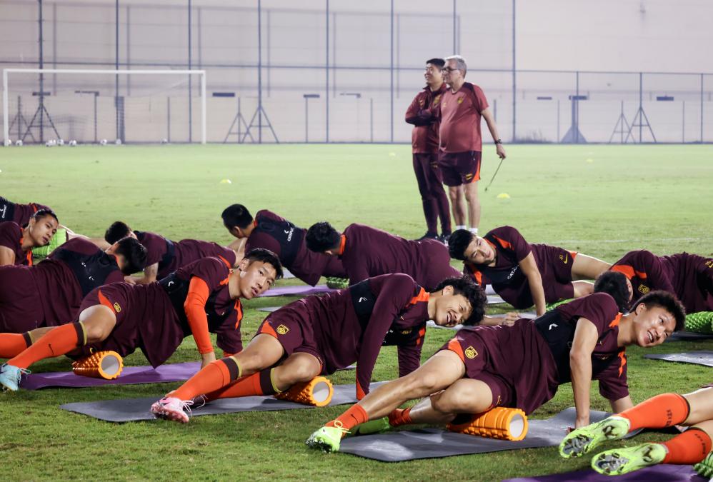 11月12日,中國(guó)國(guó)家男子足球隊(duì)成員在巴林進(jìn)行賽前訓(xùn)練,備戰(zhàn)14日與巴林隊(duì)的2026年世界杯亞洲區(qū)預(yù)選賽18強(qiáng)賽C組第五輪比賽。新華社記者 王海洲 攝