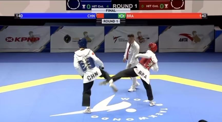 決賽首局比賽,中國(guó)隊(duì)肖樹楠以一個(gè)腹部踢擊得分加對(duì)手出界拉開分差,占據(jù)優(yōu)勢(shì)后中國(guó)隊(duì)持續(xù)迎擊,以能量值130:70獲勝。第二局中國(guó)隊(duì)開場(chǎng)防守松懈,被扣掉40分(能量值),盡管后程中國(guó)隊(duì)加強(qiáng)攻勢(shì),還是以能量值65:75不敵對(duì)手。在決勝局中,巴西隊(duì)兩記直拳打開局面,能量值占優(yōu),此后雖然巴西隊(duì)兩次被判消極進(jìn)攻,但中國(guó)隊(duì)未能把握住機(jī)會(huì),最終以能量值110:115輸?shù)舻谌?,大比?:2告負(fù)。