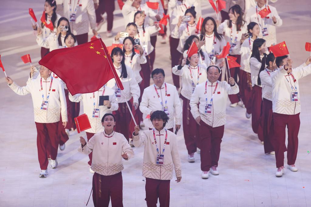 賽會開幕式于當晚在都靈奧林匹克體育館舉行。入場儀式上,來自北京體育大學的女子冰壺運動員裴君杭和北方工業(yè)大學的男子高山滑雪運動員劉祥琪共同擔任中國代表團旗手。