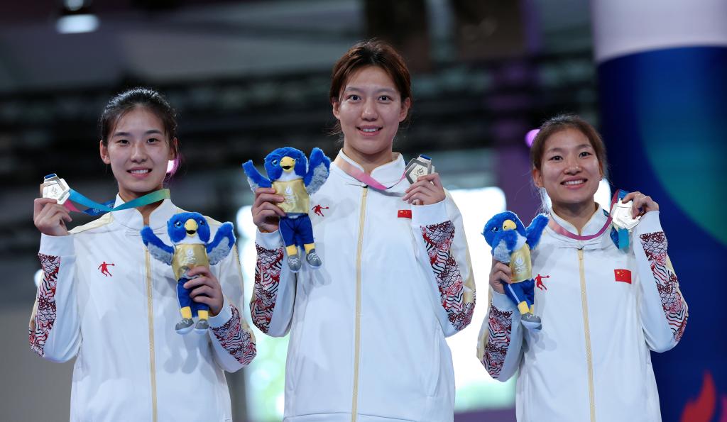 跆拳道也在當(dāng)日結(jié)束全部比賽,中國(guó)隊(duì)在該項(xiàng)目上共獲4金2銀3銅。在跆拳道女子團(tuán)體競(jìng)技比賽中,由郭清、穆文喆、邢佳妮組成的中國(guó)隊(duì)延續(xù)強(qiáng)勢(shì)表現(xiàn),從16強(qiáng)賽一路以三場(chǎng)2:0橫掃晉級(jí),并在當(dāng)日決賽中以同樣比分戰(zhàn)勝韓國(guó)隊(duì),奪得冠軍。