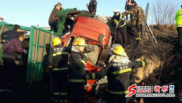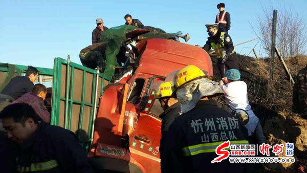7:30分左右,定襄縣消防接警后緊急出動趕到事故現(xiàn)場,與交警及現(xiàn)場群眾一起展開救援,隨后趕到的120醫(yī)護人員已給被困受傷司機打吊瓶進行搶救。