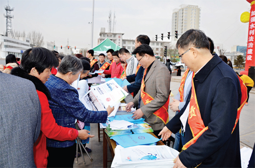 忻州市水資辦的工作人員在街頭進(jìn)行涉水法律法規(guī)和節(jié)水知識(shí)宣傳 “十二五”時(shí)期,是忻州水利史上投入最多、成效最好、群眾得實(shí)惠最多的5年。5年來,全市水利系統(tǒng)在市委、市政府的正確領(lǐng)導(dǎo)下,在上級(jí)水利部門的大力支持和指導(dǎo)下,深入貫徹落實(shí)中央、省、市加快水利改革發(fā)展的重大決策部署,積極踐行新時(shí)期治水新思路,緊緊圍繞“保障民生、改善民生、建設(shè)民生、服務(wù)民生”這條主線,突出重點(diǎn),綜合施治,水利事業(yè)取得全面、長足的發(fā)展。全市共完成水利投資36.7億元,比“十一五”增加96%,為全市經(jīng)濟(jì)社會(huì)可持續(xù)發(fā)展提供了有力的支撐和保障。 ——最嚴(yán)格水資源管理制度加快落實(shí)執(zhí)行有力。堅(jiān)持不懈地抓了汾河源頭、汾河沿岸的節(jié)能減排和治污工作,加強(qiáng)了坪上、天橋、雷鳴寺和馬圈4大泉域以及豆羅等9大水源地的保護(hù)工作,開展了對(duì)重點(diǎn)水源地監(jiān)測和工業(yè)水井監(jiān)控系統(tǒng)的建設(shè)。全市共建成地下水遠(yuǎn)程監(jiān)控中心15個(gè),累計(jì)安裝地下水遠(yuǎn)程監(jiān)控設(shè)備457臺(tái),國控點(diǎn)監(jiān)測用戶累計(jì)達(dá)40個(gè),監(jiān)控水量3.8億立方米,省級(jí)水資源監(jiān)控系統(tǒng)在線率達(dá)到80.9%,形成了較為完善的監(jiān)控網(wǎng)絡(luò)體系。全市共壓縮地下水開采量3000多萬立方米,先后關(guān)閉地下水開采井28眼。嚴(yán)守水資源開發(fā)利用控制、用水效率控制、水功能區(qū)限制納污“三條紅線”,全市用水總量由2011年的66376.1萬立方米,下降為2015年的65329.47萬立方米,圓滿完成了全市70500萬立方米的控制指標(biāo);全市萬元工業(yè)增加值用水量由2011年的29.79立方米/萬元,下降為21.73立方米/萬元,比2014年下降3.55%,圓滿完成3.5%的下降目標(biāo)。 ——農(nóng)村飲水安全工程提質(zhì)增效惠民生。全市共解決了2021個(gè)村、82.42萬農(nóng)村人口和農(nóng)村師生的飲水安全問題,累計(jì)完成投資4.08億元,農(nóng)村自來水普及率達(dá)到94%。 ——重點(diǎn)中小河流治理的防洪與生態(tài)效益同步提升。全市進(jìn)行了15條河流的河道治理,累計(jì)完成投資6.51億元。 ——中小型病險(xiǎn)水庫(水閘)除險(xiǎn)加固投入集中效益凸顯。先后對(duì)32座中小型病險(xiǎn)水庫和4座病險(xiǎn)水閘進(jìn)行了除險(xiǎn)加固,累計(jì)完成投資1.76億元。 ——節(jié)水灌溉基礎(chǔ)建設(shè)點(diǎn)多面廣持續(xù)走強(qiáng)。相繼實(shí)施了滹沱河灌區(qū)續(xù)建配套、小型農(nóng)田水利重點(diǎn)縣建設(shè)、膜下滴灌項(xiàng)目、提黃灌溉、“一村一井”、灌區(qū)節(jié)水配套改造、灌區(qū)維修養(yǎng)護(hù)等工程,累計(jì)完成投資9.63億元。新增灌溉面積17.27萬畝、改善灌溉面積92.25萬畝。完成農(nóng)田實(shí)灌面積980.95萬畝。 ——水保生態(tài)建設(shè)依托項(xiàng)目穩(wěn)步推進(jìn)。重點(diǎn)實(shí)施了京津風(fēng)沙源、淤地壩、坡改梯、黃河生態(tài)重點(diǎn)小流域治理、縣川河治理、鞏固退耕還林成果項(xiàng)目、國家水土保持重點(diǎn)建設(shè)、水土流失重點(diǎn)治理等一批水保生態(tài)項(xiàng)目,累計(jì)完成投資5.32億元。完成水土流失綜合治理面積330.3萬畝。 ——城鄉(xiāng)山洪災(zāi)害防治能力明顯增強(qiáng)。重點(diǎn)實(shí)施了山洪災(zāi)害防治非工程措施項(xiàng)目、抗旱應(yīng)急水源工程和城郊排洪應(yīng)急工程建設(shè),累計(jì)完成投資2.45億元。市縣鄉(xiāng)村山洪災(zāi)害防治基本實(shí)現(xiàn)全覆蓋。 ——水產(chǎn)、水電和移民后期扶持工作扎實(shí)推進(jìn)效果良好。發(fā)展?jié)O業(yè)養(yǎng)殖面積1.6萬畝,完成成魚生產(chǎn)12591.9噸。對(duì)定襄、五臺(tái)、寧武3縣的5座水電站進(jìn)行了增效擴(kuò)容,累計(jì)完成投資2312萬元。完成小水發(fā)電10109.54萬度。全市投資6037.5萬元,持續(xù)加大對(duì)水工程移民后期扶持的力度,使庫區(qū)移民群眾的生產(chǎn)和生活條件顯著改善。 ——水行政管理水平明顯提高。堅(jiān)持“規(guī)范管理,保障安全,支持發(fā)展”的原則,出臺(tái)并由市政府發(fā)布了忻州市《地下水資源管理辦法》、《水源熱泵項(xiàng)目利用地下水資源保護(hù)管理辦法(試行)》、《水庫管理暫行辦法》、《小水電站運(yùn)行管理暫行辦法》、《水土保持淤地壩運(yùn)行管護(hù)暫行辦法》等制度性、規(guī)范性文件,從而使全市水利工作中存在的“重建輕管”問題開始得到有效解決。 ——項(xiàng)目儲(chǔ)備和前期工作進(jìn)一步加強(qiáng)。一是編制了《忻州市水中長期供求規(guī)劃》、《山西大水網(wǎng)縣域供水規(guī)劃》、《農(nóng)業(yè)灌溉規(guī)劃》;二是編制了48座小型水庫的更新建設(shè)規(guī)劃、定襄縣農(nóng)村水電直供電片區(qū)電網(wǎng)改造規(guī)劃和坪上應(yīng)急引水工程城鄉(xiāng)供水一體化項(xiàng)目等工程規(guī)劃;三是編制了《汾河流域生態(tài)修復(fù)規(guī)劃(寧武、靜樂)》、《滹沱河流域生態(tài)修復(fù)與保護(hù)規(guī)劃》及《桑干河流域生態(tài)修復(fù)與保護(hù)規(guī)劃》;四是完成了