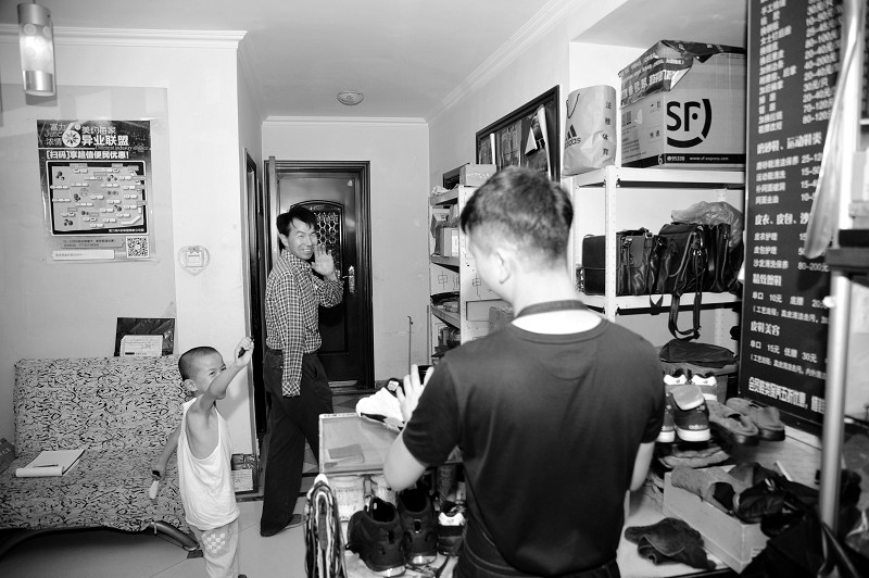 客戶不在家的時候,王貴生就會把快遞放在小區(qū)里的定點(diǎn)處,他們已經(jīng)和附近鞋店的老板成了朋友。