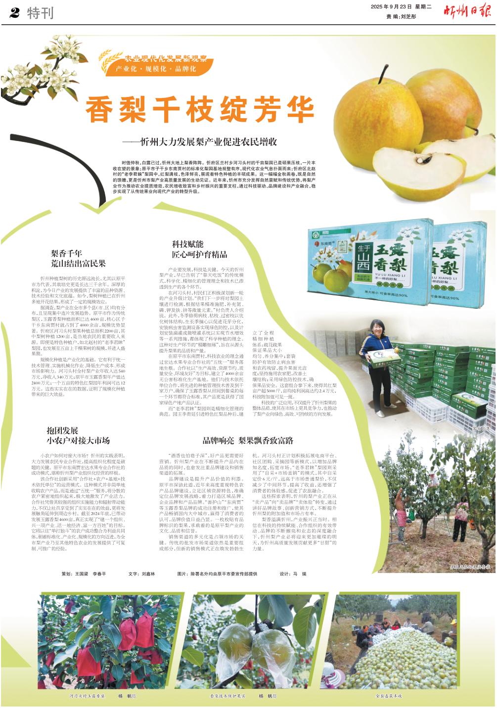 時(shí)值仲秋,白露已過,忻州大地上梨香陣陣。忻府區(qū)蘭村鄉(xiāng)河習(xí)頭村的千畝梨園已是碩果壓枝,一片豐收在望的景象;原平市子干鄉(xiāng)東南賈村的標(biāo)準(zhǔn)化梨園基地規(guī)整有序,現(xiàn)代化農(nóng)業(yè)氣息撲面而來;忻府區(qū)北趙村的“老李君睞”梨園中,紅梨滿枝,色澤鮮亮,展現(xiàn)著特色種植的豐碩成果。這一幅幅金秋畫卷,既是自然的饋贈(zèng),更是忻州市梨產(chǎn)業(yè)高質(zhì)量發(fā)展的生動(dòng)見證。近年來,忻州市充分發(fā)揮自然稟賦和傳統(tǒng)優(yōu)勢,將梨產(chǎn)業(yè)作為推動(dòng)農(nóng)業(yè)提質(zhì)增效、農(nóng)民增收致富和鄉(xiāng)村振興的重要支柱,通過科技驅(qū)動(dòng)、品牌建設(shè)和產(chǎn)業(yè)融合,穩(wěn)步實(shí)現(xiàn)了從傳統(tǒng)果業(yè)向現(xiàn)代產(chǎn)業(yè)的轉(zhuǎn)型升級。 梨香千年 荒山結(jié)出富民果 忻州種植梨樹的歷史源遠(yuǎn)流長,尤其以原平市為代表,其栽培史更是長達(dá)三千余年。深厚的積淀,為今日產(chǎn)業(yè)的發(fā)展提供了豐富的品種資源、技術(shù)經(jīng)驗(yàn)和文化底蘊(yùn)。如今,梨樹種植已在忻州多地開花結(jié)果,形成了一定的規(guī)模效應(yīng)。 據(jù)調(diào)查,梨產(chǎn)業(yè)在全市多個(gè)縣(市、區(qū))均有分布,且呈現(xiàn)集中連片發(fā)展趨勢。原平市作為傳統(tǒng)梨區(qū),玉露香梨種植面積已達(dá)4600畝,核心區(qū)子干鄉(xiāng)東南賈村就占到了4000余畝,規(guī)模優(yōu)勢顯著。忻府區(qū)河習(xí)頭村梨果種植總面積2200畝,其中梨樹種植1200畝,是當(dāng)?shù)剞r(nóng)民的重要收入來源。即便是特色種植戶,如北趙村的“老李君睞”梨園,也發(fā)展至五畝上千棵果樹的規(guī)模,并進(jìn)入盛果期。 規(guī)?;N植是產(chǎn)業(yè)化的基礎(chǔ)。它有利于統(tǒng)一技術(shù)管理、實(shí)施機(jī)械化作業(yè)、降低生產(chǎn)成本、形成市場影響力。河習(xí)頭村全村梨產(chǎn)業(yè)年收入達(dá)540萬元,凈收入340萬元;原平市玉露香梨年產(chǎn)值達(dá)2400萬元;一個(gè)五畝的特色紅梨園年利潤可達(dá)12萬元。這些實(shí)實(shí)在在的數(shù)據(jù),證明了規(guī)?;N植帶來的巨大效益。 抱團(tuán)發(fā)展 小農(nóng)戶對接大市場 小農(nóng)戶如何對接大市場?忻州的實(shí)踐表明,大力發(fā)展農(nóng)民專業(yè)合作社,提高組織化程度是破題的關(guān)鍵。原平市東南賈宏達(dá)水果專業(yè)合作社的成功模式,堪稱忻州梨產(chǎn)業(yè)組織化經(jīng)營的樣板。 該合作社創(chuàng)新采用“合作社+農(nóng)戶+基地+技術(shù)依托單位”的運(yùn)營模式。這種模式并非簡單地收購農(nóng)戶產(chǎn)品,而是通過“五統(tǒng)一”服務(wù),將分散的農(nóng)戶緊密地組織起來,極大地激發(fā)了產(chǎn)業(yè)活力。合作社憑借其較強(qiáng)的組織實(shí)施能力和輻射帶動(dòng)能力,不僅讓社員享受到了實(shí)實(shí)在在的效益,更將發(fā)展觸角延伸到周邊鄉(xiāng)村。截至2024年底,已帶動(dòng)發(fā)展玉露香梨4600畝,真正實(shí)現(xiàn)了“建一個(gè)組織、興一項(xiàng)產(chǎn)業(yè)、活一地經(jīng)濟(jì)、富一方百姓”的目標(biāo)。它將以往“單打獨(dú)斗”的農(nóng)戶成功整合為利益共同體,朝著標(biāo)準(zhǔn)化、產(chǎn)業(yè)化、規(guī)模化的方向邁進(jìn),為全市梨產(chǎn)業(yè)乃至其他特色農(nóng)業(yè)的發(fā)展提供了可復(fù)制、可推廣的經(jīng)驗(yàn)。 科技賦能 匠心呵護(hù)育精品 產(chǎn)業(yè)要發(fā)展,科技是關(guān)鍵。今天的忻州梨產(chǎn)業(yè),早已告別了“靠天吃飯”的傳統(tǒng)模式,科學(xué)化、精細(xì)化的管理理念和技術(shù)已滲透到生產(chǎn)的各個(gè)環(huán)節(jié)。 在河習(xí)頭村,村民們正積極謀劃新一輪的產(chǎn)業(yè)升級計(jì)劃?!拔覀兿乱徊綄鎴@土壤進(jìn)行檢測,根據(jù)結(jié)果精準(zhǔn)施肥,補(bǔ)充氮、磷、鉀及鐵、鋅等微量元素。”村負(fù)責(zé)人介紹說。此外,冬季修剪病枝、枯枝、過密枝以優(yōu)化樹體結(jié)構(gòu),生長季摘心以促進(jìn)花芽分化,安裝病蟲害監(jiān)測設(shè)備實(shí)現(xiàn)綠色防控,以及計(jì)劃安裝滴灌或微噴灌系統(tǒng)以實(shí)現(xiàn)節(jié)水增效等一系列措施,都體現(xiàn)了科學(xué)種植的理念。這種對生產(chǎn)環(huán)節(jié)的“精雕細(xì)琢”,旨在從源頭提升梨果的品質(zhì)和產(chǎn)量。 在原平市東南賈村,科技農(nóng)業(yè)的理念通過宏達(dá)水果專業(yè)合作社的“五統(tǒng)一”服務(wù)落地生根。合作社以“生產(chǎn)高效、資源節(jié)約、質(zhì)量安全、環(huán)境友好”為目標(biāo),建立了4000余畝無公害標(biāo)準(zhǔn)化生產(chǎn)基地。他們與技術(shù)依托單位合作,將先進(jìn)的種植管理技術(shù)普及到千家萬戶,確保了玉露香梨從田間到餐桌的每一個(gè)環(huán)節(jié)都符合標(biāo)準(zhǔn),其產(chǎn)品更是獲得了國家綠色產(chǎn)地產(chǎn)品認(rèn)證。 而“老李君睞”梨園則是精細(xì)化管理的典范。園主李貴廷引進(jìn)特色紅梨品種后,建立了全程精細(xì)種植體系:疏花疏果保證果品大小均勻、養(yǎng)分集中;套袋防護(hù)有效防止病蟲害和農(nóng)藥殘留,提升果面光潔度;堅(jiān)持施