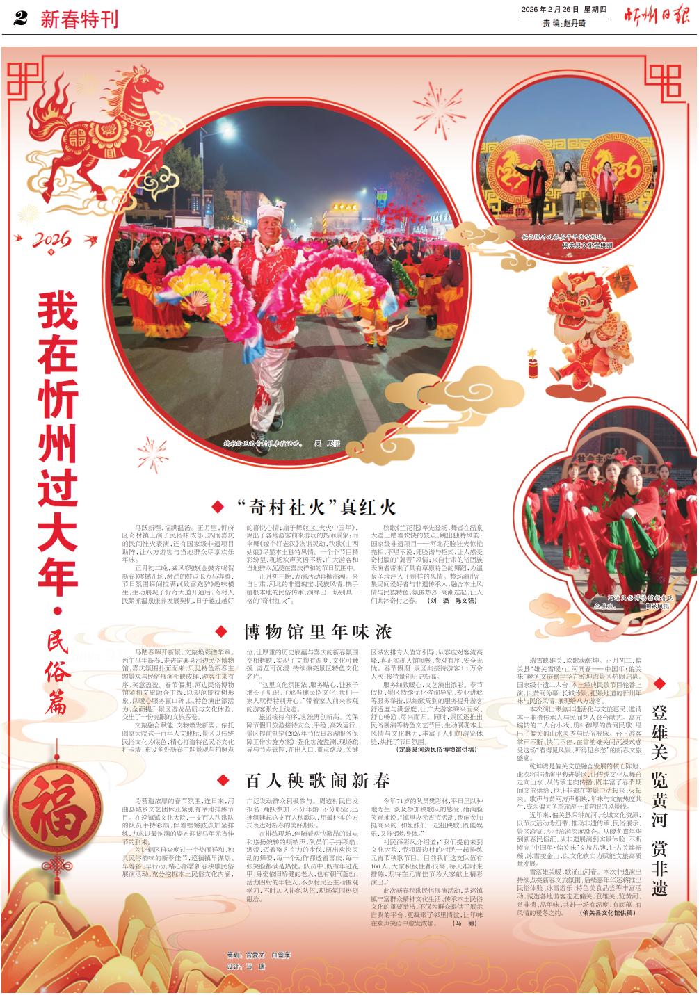 馬躍新程,福滿溫湯。正月里,忻府區(qū)奇村鎮(zhèn)上演了民俗味濃郁、熱鬧喜慶的民間社火表演,還有國家級(jí)非遺項(xiàng)目助陣,讓八方游客與當(dāng)?shù)厝罕姳M享歡樂年味。