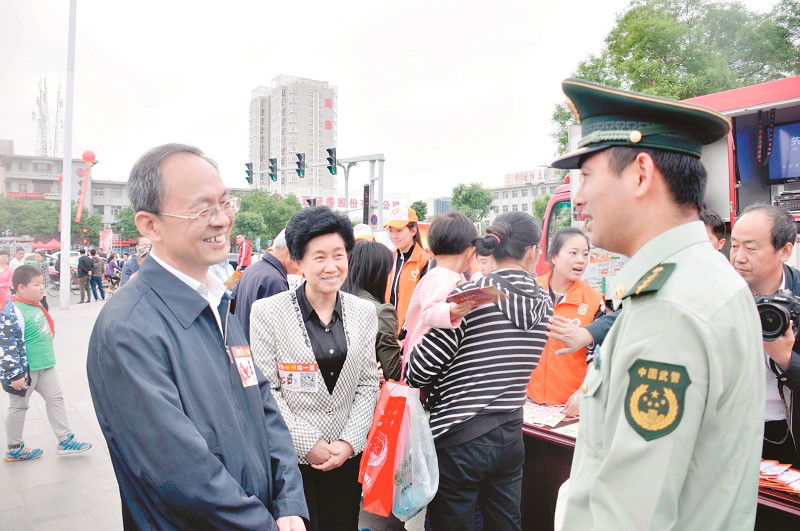 5月8日,在城市廣場(chǎng)舉辦的現(xiàn)場(chǎng)拉票活動(dòng)中,志愿者們胸前貼著活動(dòng)大賽二維碼標(biāo)識(shí)的胸貼,向過(guò)往的市民宣傳著。一位臉上洋溢著笑容、胸前貼有二維碼標(biāo)識(shí)的人引起了大家的關(guān)注?!澳銈兛炜矗遣皇青嵤虚L(zhǎng)?”“市長(zhǎng)從鄉(xiāng)下回城的路上,看到了群眾搞活動(dòng),當(dāng)即決定現(xiàn)場(chǎng)助威?!薄吧曷谩毕嚓P(guān)工作人員李海燕回憶,下車后,市長(zhǎng)與志愿者一樣胸前貼了二維碼,跟其他人一起宣傳,被市民“發(fā)現(xiàn)”后,還上臺(tái)做了脫稿演講,很多人都感動(dòng)落淚?!案咐相l(xiāng)親們,我路過(guò)看到這兒啊,非常熱鬧,一了解呢,是咱們忻州市的志愿者自發(fā)為爭(zhēng)取忻州旅發(fā)大會(huì)的主辦權(quán),在進(jìn)行活動(dòng)、在進(jìn)行拉票。我被我們忻州市民熱愛(ài)家鄉(xiāng)、熱愛(ài)忻州、期盼我們忻州越來(lái)越美好的這種追求和責(zé)任所深深感動(dòng)。我在此代表市委市政府深深地謝謝大家??吹浇裉爝@個(gè)場(chǎng)面使我感到,我們有這樣好的市民,我們有這樣好的群眾,我們忻州沒(méi)有辦不成的事情,我們的忻州一定能夠越來(lái)越美好……”