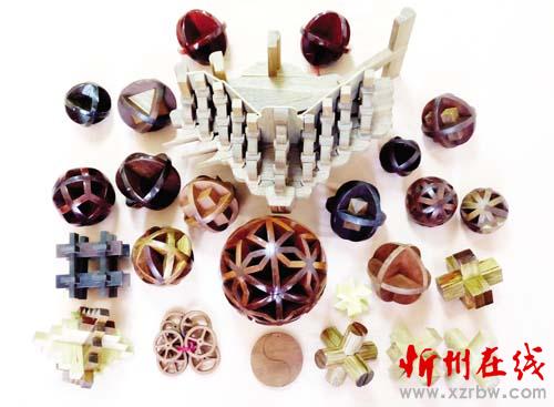 卯竅傳奇——五十六民族大團(tuán)結(jié):是用56塊木頭做的一個(gè)球體,每一塊木頭都是用卯竅連接,卯竅結(jié)構(gòu)異常復(fù)雜。外形為祿福圖案,寓意56個(gè)民族大團(tuán)結(jié),天祿地祿人間福。它的種類有80多種,做一個(gè)得兩個(gè)多月的時(shí)間。