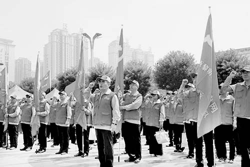 圖為國網(wǎng)忻州供電公司黨員服務(wù)隊進(jìn)行集體宣誓。