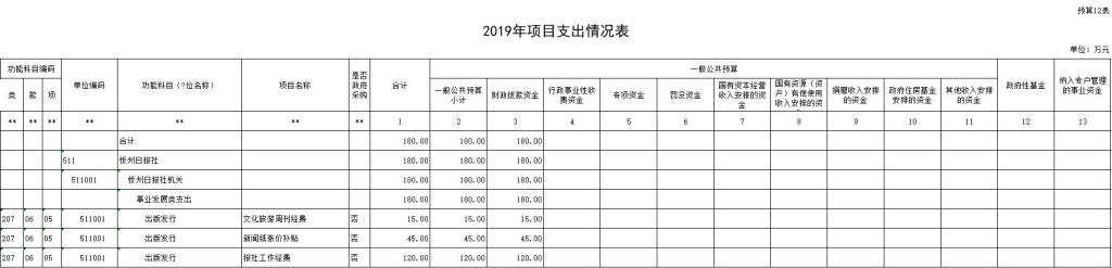 2、項目支出180萬元,比2018年增加55萬元。主要原因為新增《文化旅游》周刊經(jīng)費15萬元,新聞紙漲價補(bǔ)貼經(jīng)費45萬元。廣告收入專項經(jīng)費120萬元,主要用于辦公費、維修費、水電費、差旅費、采暖費、郵電費等日常開支。